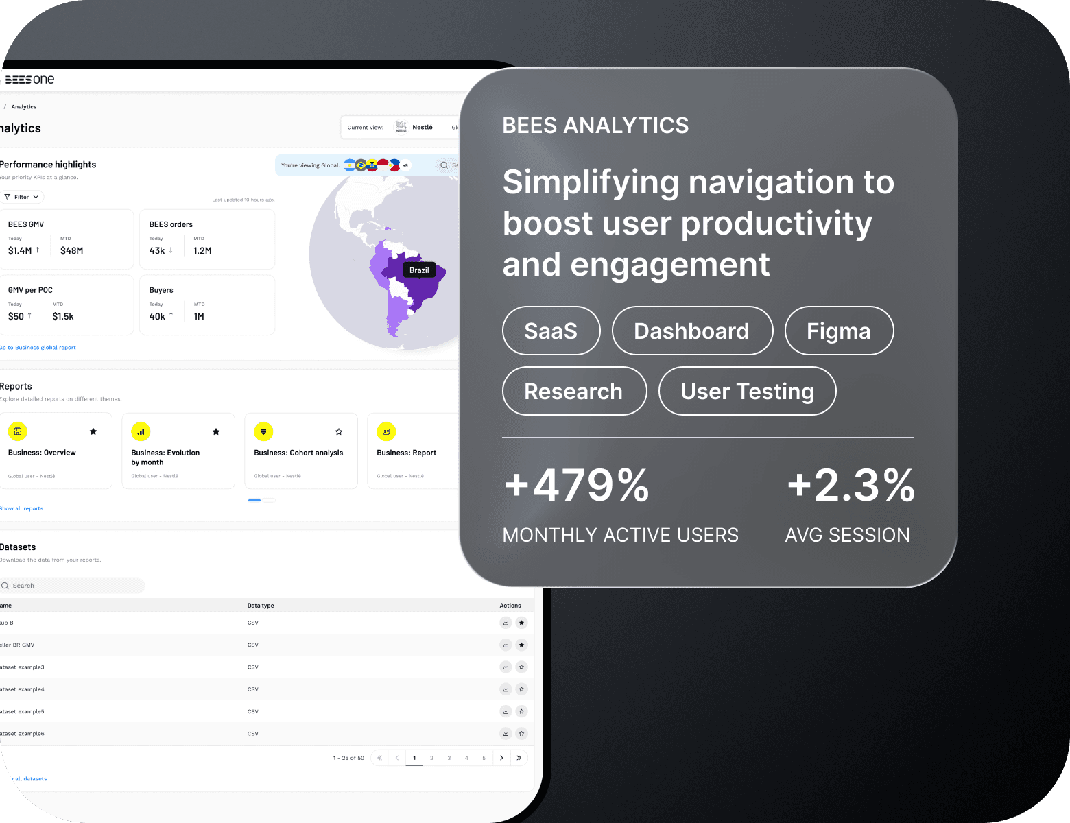 Users of the Analytics product were facing difficulties in navigating reports and features. This led to confusion, inefficiency, and underutilization of the available tools, ultimately resulting in a frustrating user experience and decreased productivity.